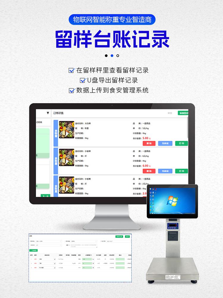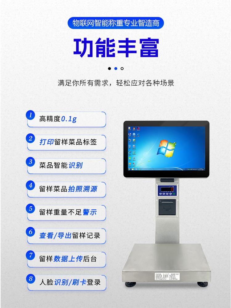 智能留樣秤與食堂留樣,食品安全深度綁定,其核心作用在于用技術代替人工,用數據固化流程,用閉環防范風險。它集精準稱重,身份核驗,自動拍照,標簽打印,數據上云,到期提醒于一體。從取樣,登記,存儲到銷毀全節點可控可查,從源頭解決留樣不規范,不可信,不可溯的問題。